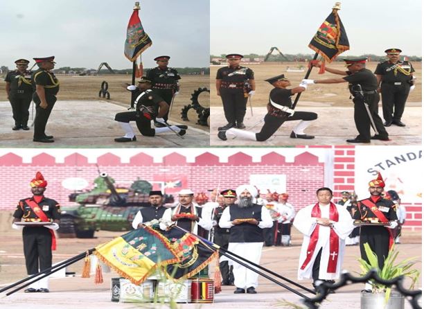 New Delhi: सेना प्रमुख जनरल मनोज पांडे ने 25 मार्च, 2023 को राजस्थान के सूरतगढ़ सैन्य स्टेशन में आयोजित एक प्रभावशाली मानक प्रस्तुति परेड के दौरान भारतीय सेना की चार बख्तरबंद रेजीमेंटों- 49 बख्तरबंद रेजिमेंट, 51 बख्तरबंद रेजिमेंट, 53 बख्तरबंद रेजिमेंट और 54 बख्तरबंद रेजिमेंट को प्रतिष्ठित ‘राष्ट्रपति के मानक’ या ‘निशान’ से सम्मानित किया। इस अवसर पर बड़ी संख्या में गणमान्य व्यक्ति और पूर्व सैनिकों ने कार्यक्रम की गरिमा बढ़ाई। इस कार्यक्रम में चारों बख्तरबंद रेजीमेंटों ने पूरी भव्यता के साथ टैंकों सहित एक घुड़सवार परेड प्रदर्शित की।