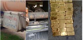 रोके गए वाहनों की गहन जांच के बाद 15.93 किलोग्राम वजन के सोने के 96 बिस्कुट जब्त किए गए, जिन्हें तीनों वाहनों के विभिन्न पूर्जों में होशियारी से छुपा कर रखा गया था। कार्रवाई में सिंडिकेट के पांच लोगों को गिरफ्तार किया गया है और तीन वाहन जब्त किए गए हैं। आगे की जांच जारी है।