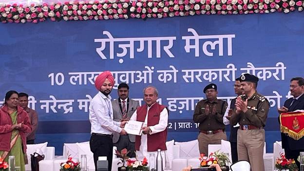 नई दिल्ली: रोजगार मेले के तहत मंगलवार को देशभर में 71,000 से ज्यादा युवाओं को नियुक्ति-पत्र मिला। प्रधानमंत्री नरेंद्र मोदी ने नियुक्ति-पत्र प्रदान करने के कार्यक्रम का वीडियो कॉन्फ्रेंसिंग के माध्यम से शुभारंभ किया। साथ ही, प्रधानमंत्री ने कर्मयोगी प्रारंभ मॉड्यूल का भी शुभारंभ किया, जो सभी नवनियुक्त व्‍यक्तियों के लिए एक ऑनलाइन ओरिएंटेशन कोर्स है। इस अवसर पर मोदी ने कहा कि स्टार्ट-अप्स से लेकर स्वरोजगार तक, स्पेस से लेकर ड्रोन तक, आज भारत में युवाओं के लिए चौतरफा नए अवसरों का निर्माण हो रहा है। रोजगार मेला युवाओं को सशक्त बनाने और उन्हें राष्ट्रीय विकास में उत्प्रेरक बनाने का हमारा प्रयास है। आज देश में 45 स्थानों पर रोजगार मेले का आयोजन हुआ, जिसके अंतर्गत भोपाल के कार्यक्रम में केंद्रीय कृषि एवं किसान कल्याण मंत्री नरेंद्र सिंह तोमर मुख्य अतिथि थे। तोमर ने कहा कि हमारे देश के युवाओं की ताकत हमारी सबसे बड़ी ताकत है और युवाओं की पूंजी हमारी सबसे बड़ी पूंजी है।