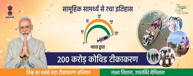 प्रधानमंत्री ने कोविड टीकाकरण अभियान के 200 करोड़ की ऐतिहासिक उपलब्धि हासिल करने पर नागरिकों को बधाई दी