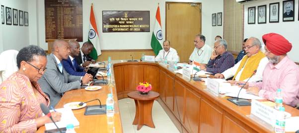 नई दिल्ली: केंद्रीय कृषि एवं किसान कल्याण मंत्री नरेन्द्र सिंह तोमर और बोत्सवाना के अंतर्राष्ट्रीय मामले और सहयोग मंत्री डॉ. लेमोगांग क्वापे के बीच कृषि एवं संबद्ध क्षेत्रों में दोनों देशों के मध्य सहयोग के मुद्दों पर चर्चा करने के लिए आज नई दिल्ली में एक बैठक आयोजित की गई।